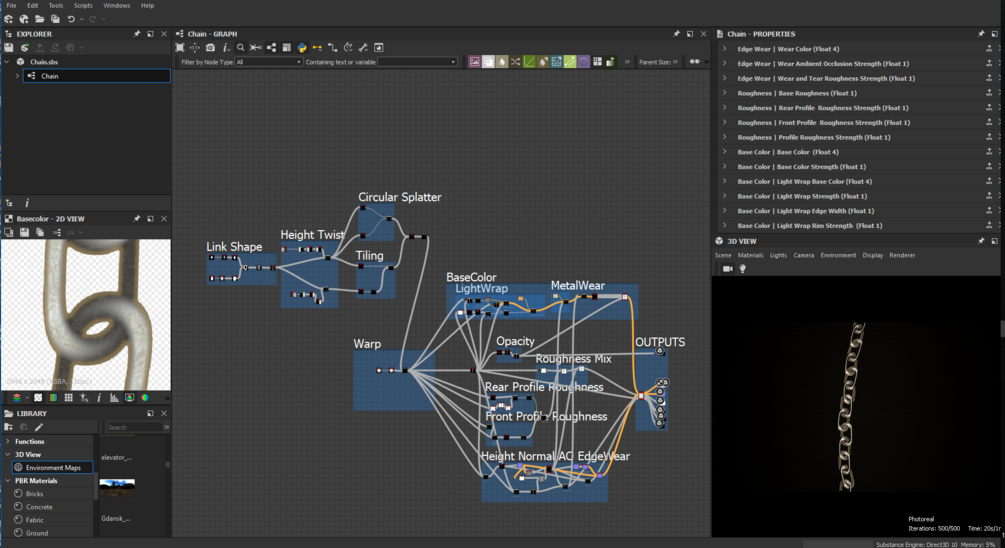 Chain Generator for Substance Designer/Painter, complete with alpha channels to lay chains over objects.